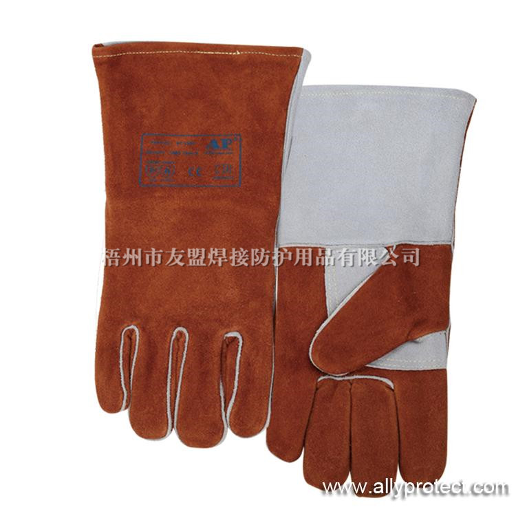 - 產(chǎn)品描述: [ AP ]咖啡色牛二層皮全皮電焊手套,斜耐磨掌連指托層和加厚內里設計,適用于焊接、切割及搬運等用途。